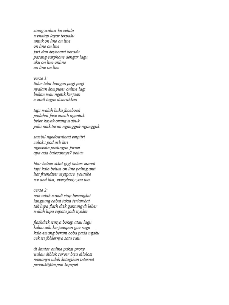 Baca saat ku menyembahmu lirik novel online:. dia mengancam akan membunuh mereka "Aku akan membunuh mereka dengan tanganku sendiri!" dia berkata sambil menangis.. dia mengingatkan anak-anaknya, "Jauhi pria ini, dia bersumpah akan membunuh kalian berdua." Malam itu, komputer Elliot diretas dan dia ditantang—oleh salah satu dari si kembar. Dan Berikut Ini Lirik Lengkap Dari Lagu Duka Dalam Rindu: Data - Duka Dalam Rindu: Malam ini ku sendiri lagi. Seperti malam-malam yang biasa. Hanya bulan yang setia menati. Pagi yang bakal menjelma. Mengapa kau dustai cinta yang murni. Sedangkan kau tahu cinta ku suci. Kau robekkan jiwa hatinya.